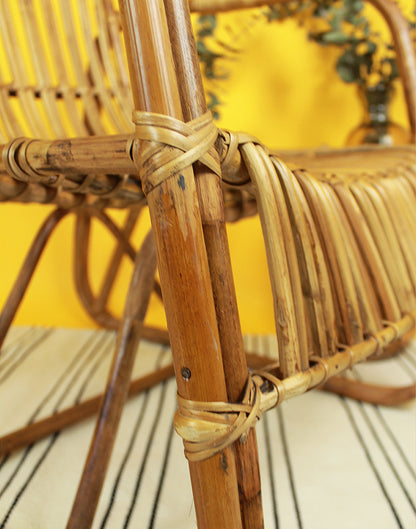 Bring vintage charm to your space with this large rattan armchair. Featuring a natural finish and soft, organic lines, it adds warmth and texture to any room. Ideal for relaxed, stylish seating.