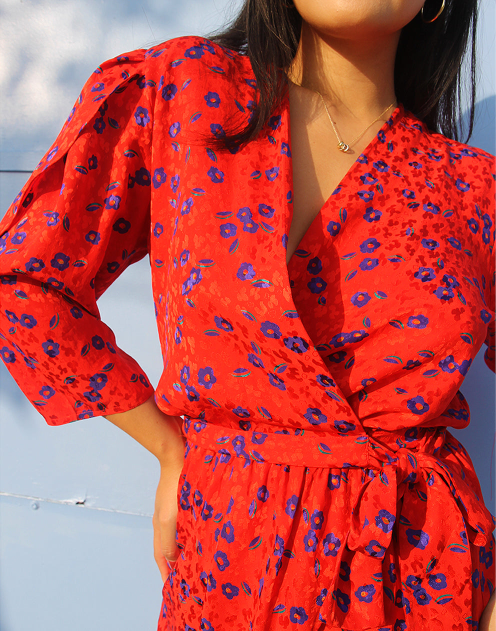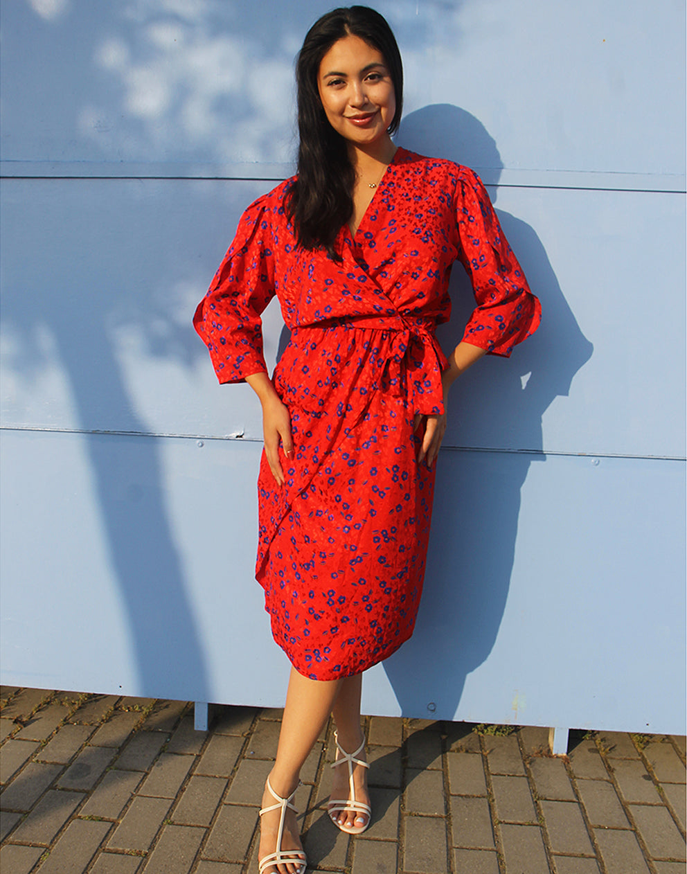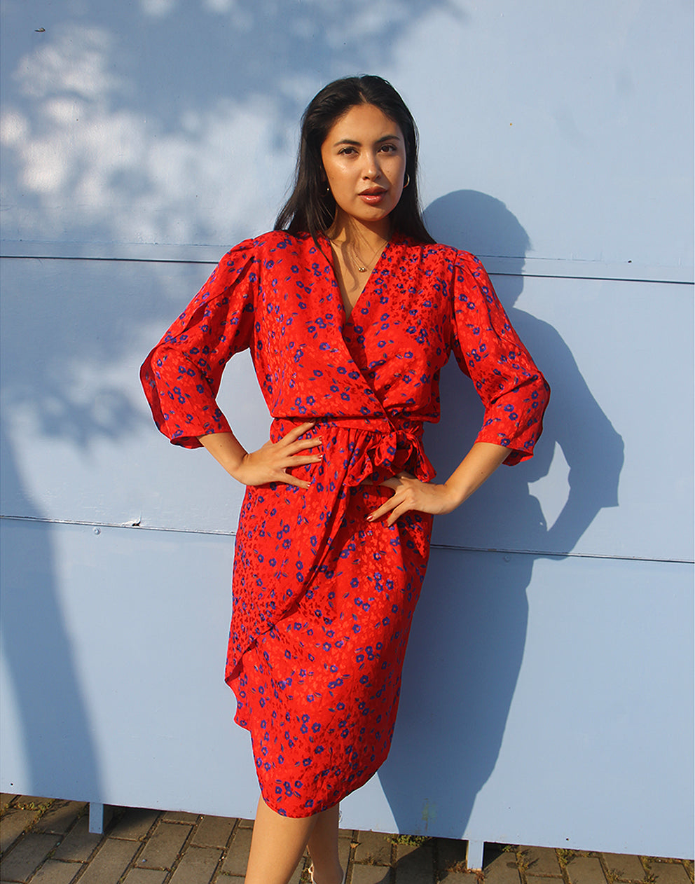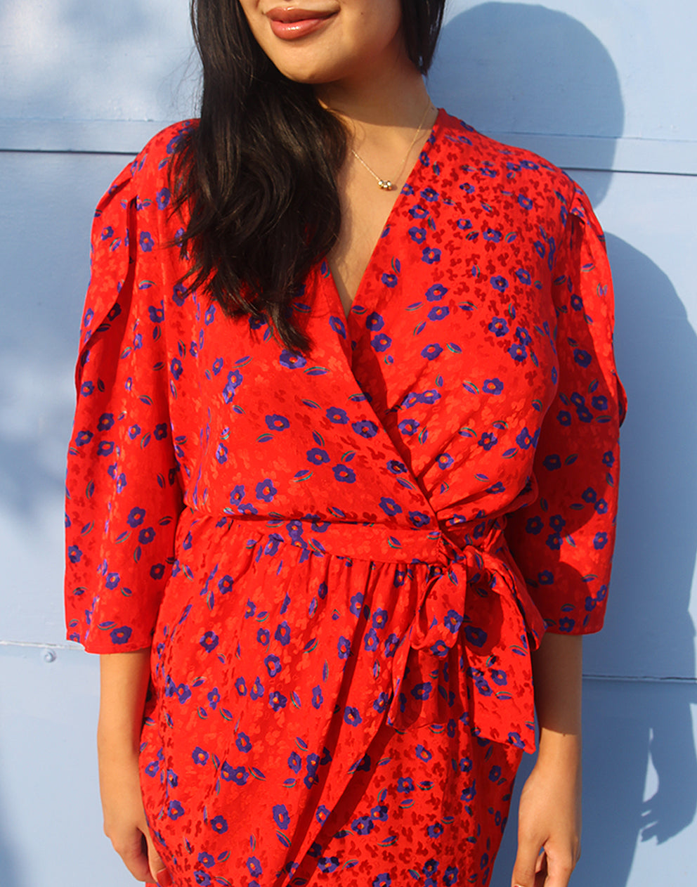Whether you're attending a black tie wedding, a spring wedding guest dress event, or a cocktail party, this red dress is the perfect choice. Its knee-length design and flattering fit make it suitable for a wide range of formal occasions. The subtle floral print adds a pop of color, making this dress a standout piece in any wardrobe.