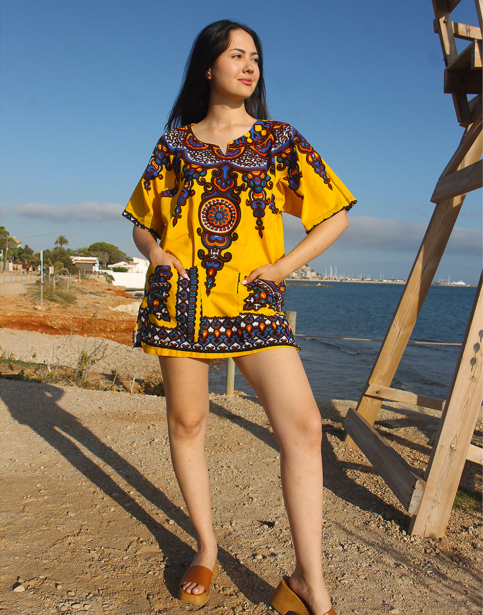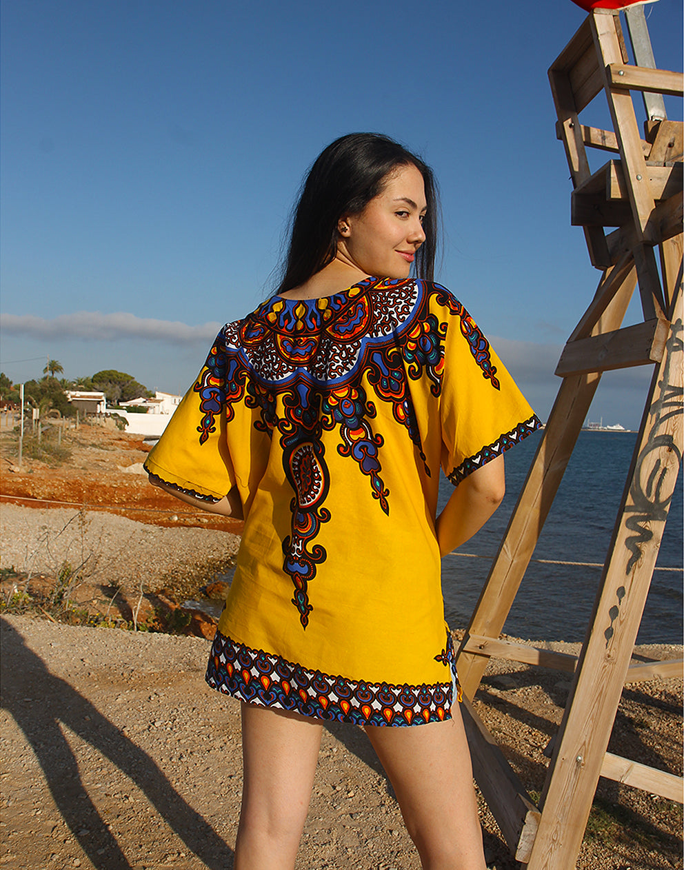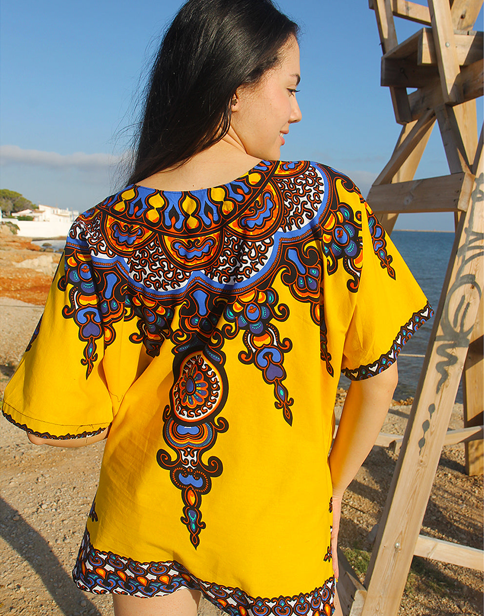 Ideal for lovers of timeless beachwear for women, this yellow top offers an easy, breezy silhouette and a splash of color. A standout choice in beach cover up dresses for those who love stylish, sustainable fashion.