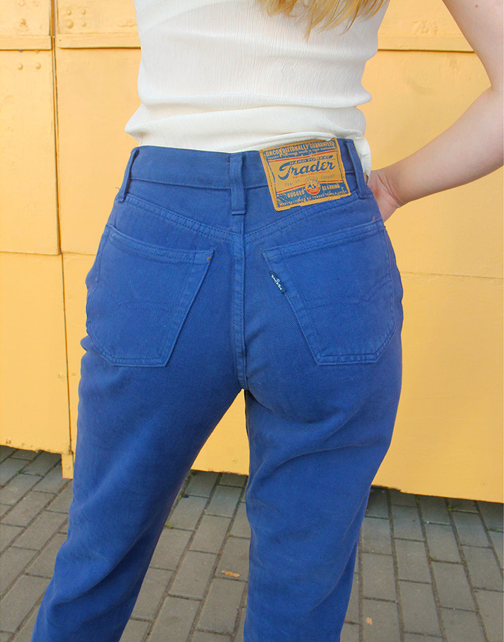 Bring back the 90s with these high rise jeans in vibrant bright blue denim. Designed with a tapered leg, zipper fly, and classic front and back pockets for a timeless fit.