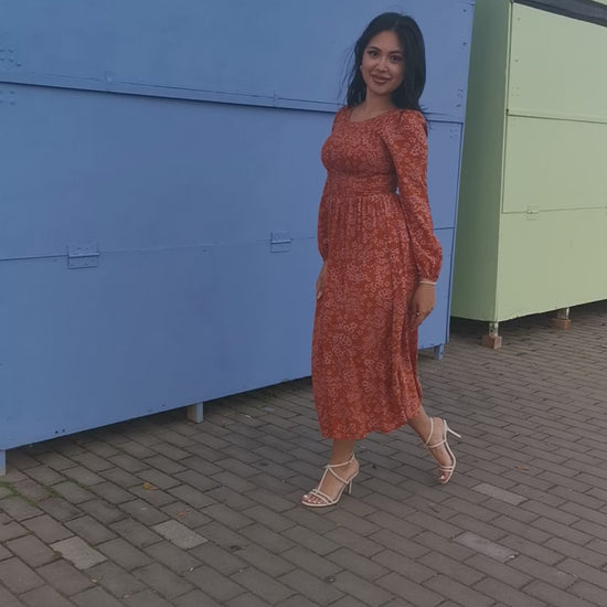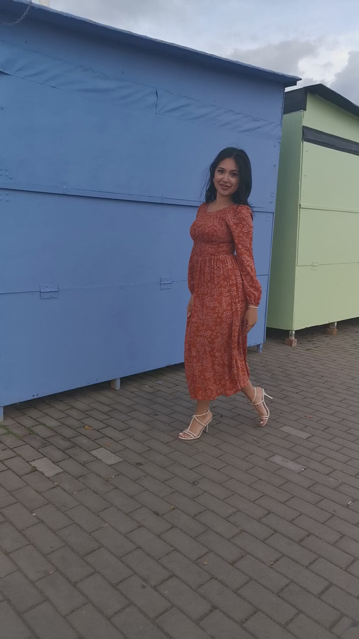 Measurements: 32"/ 81cm bust - 26" / 66cm waist - 52" / 132cm hips -23" / 58cm sleeve length - 48" / 122cm dress length.