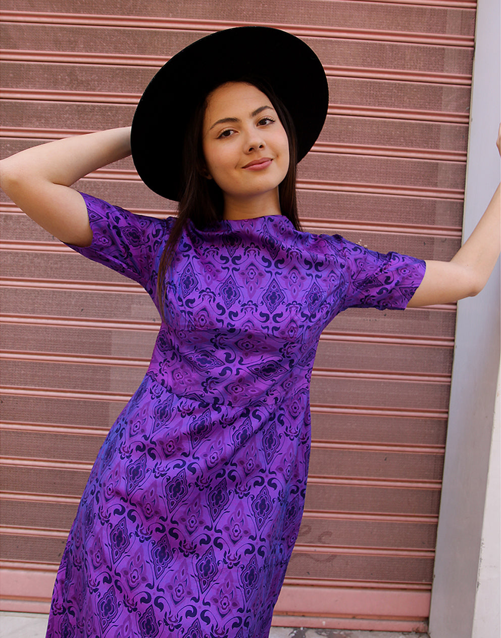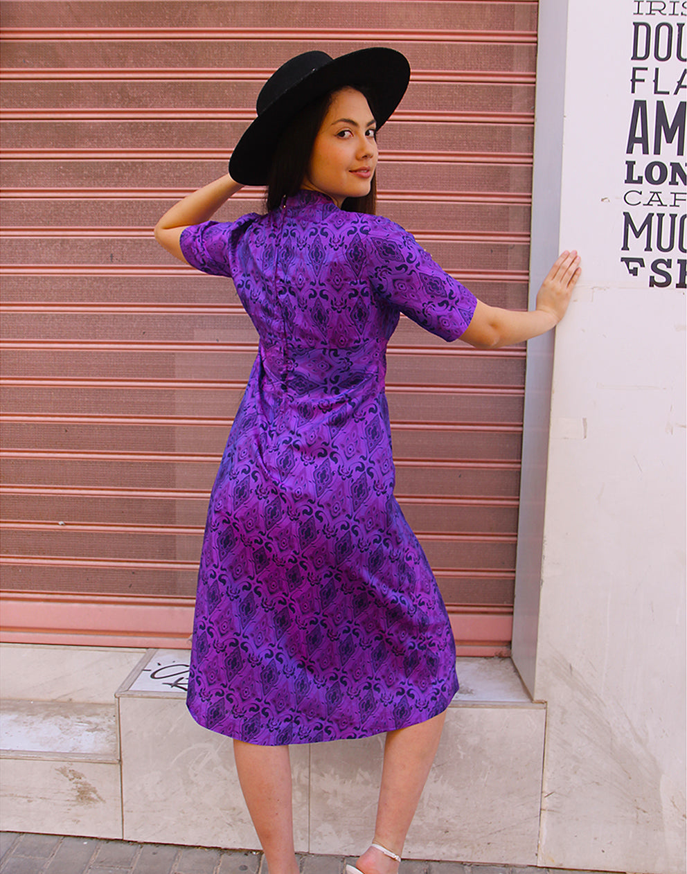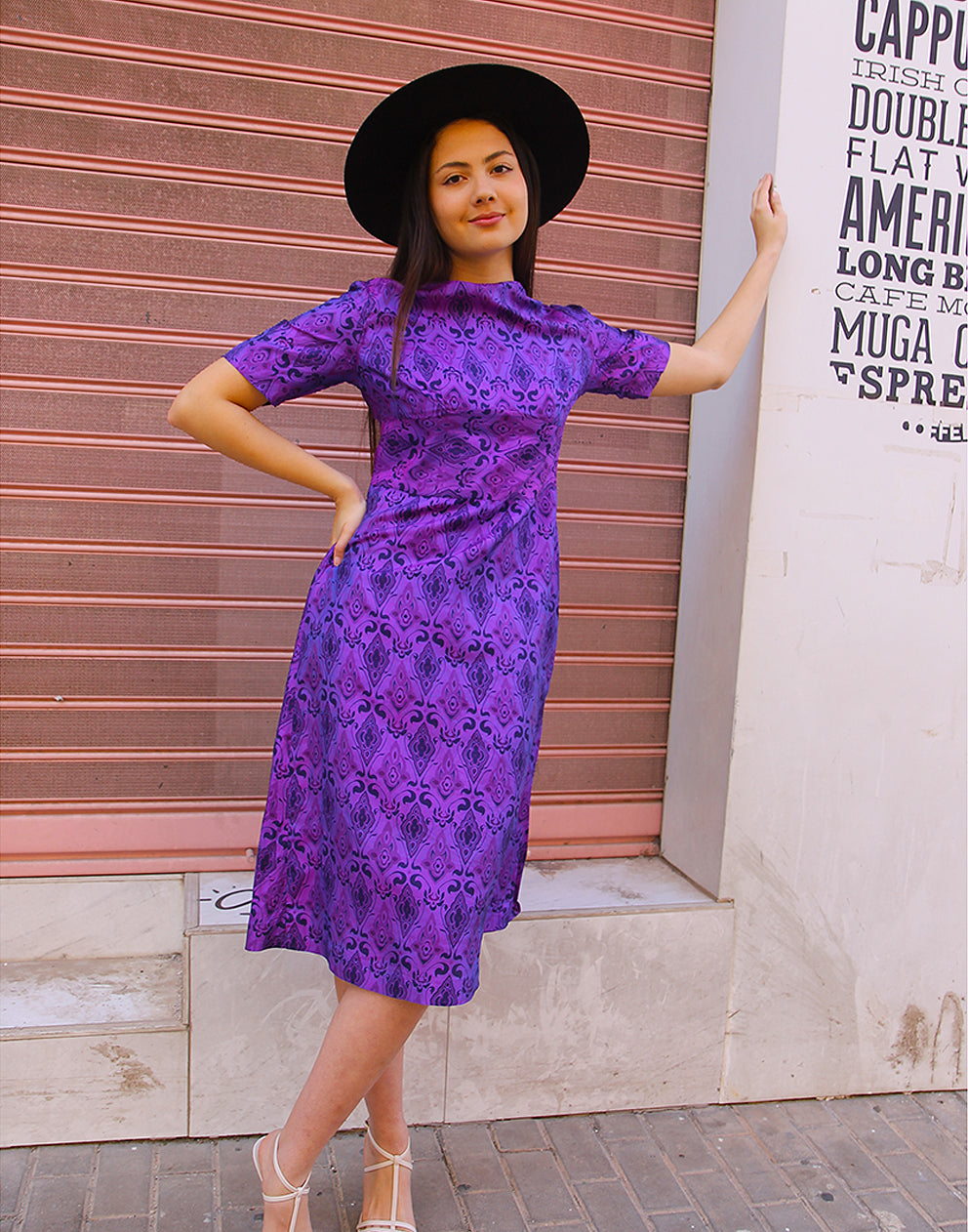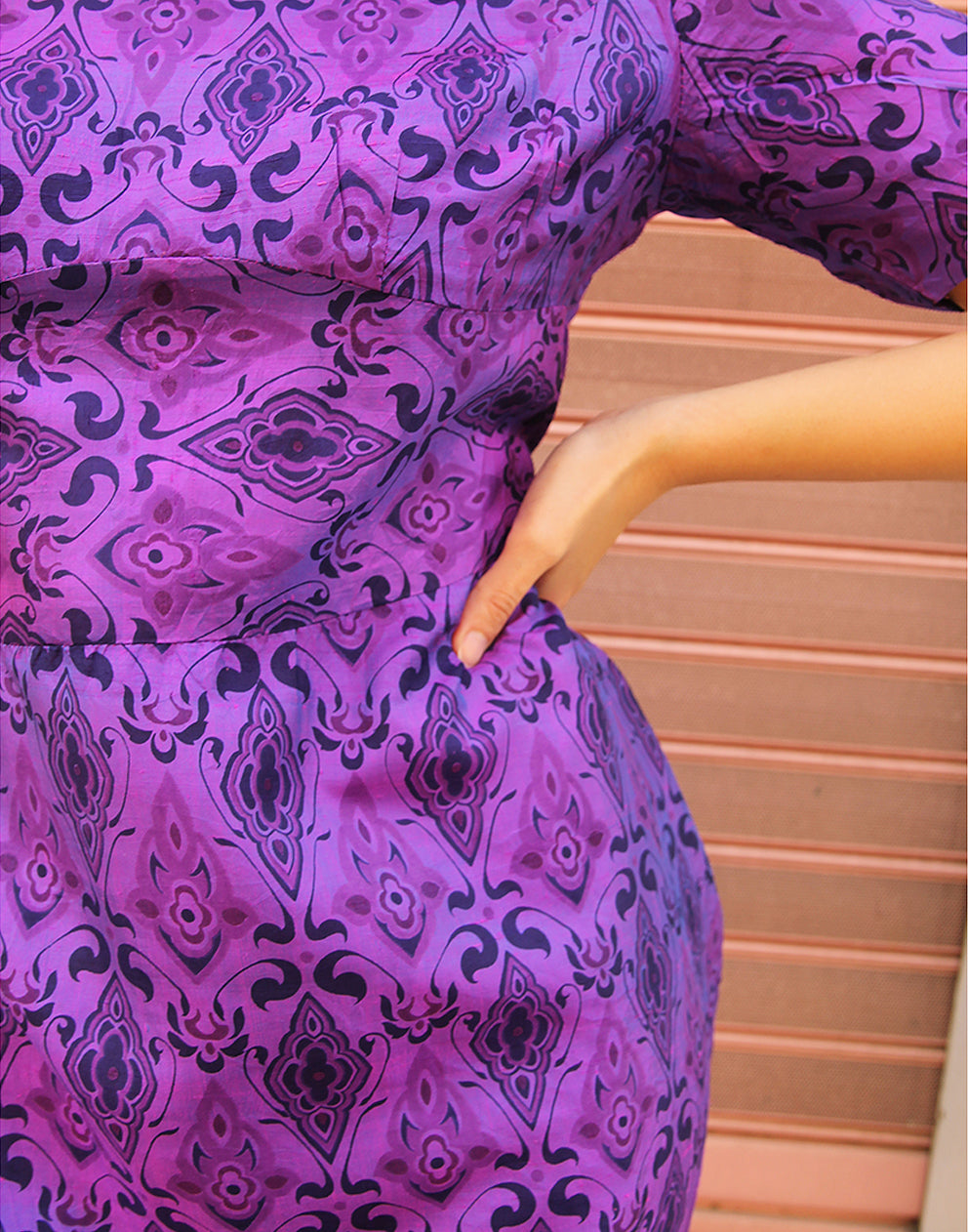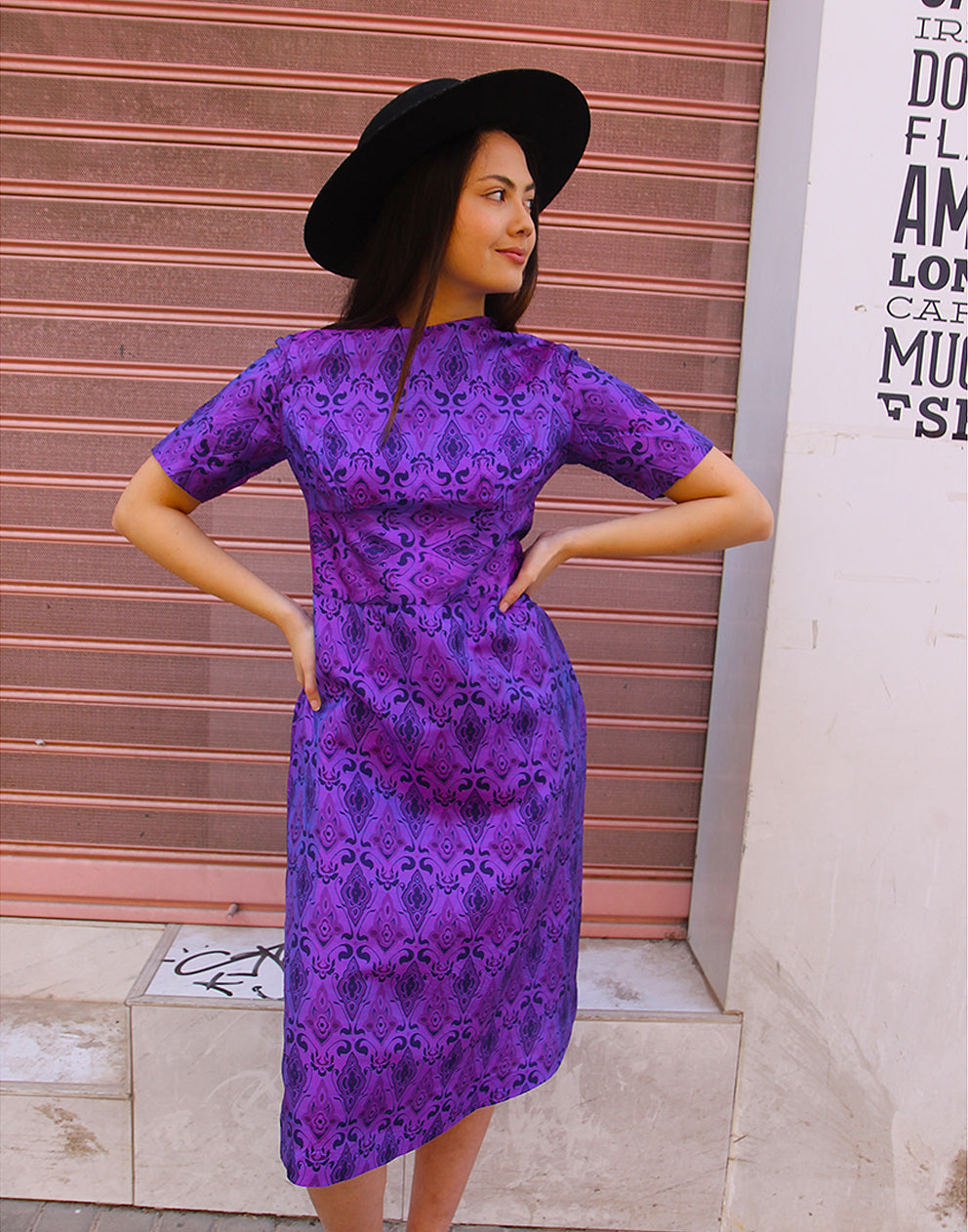 Medidas: 36"/ 92cm busto - 31"/ 79cm cintura - 40"/ 102cm caderas - 11"/ 28cm largo de manga - 45"/ 115cm largo del vestido
