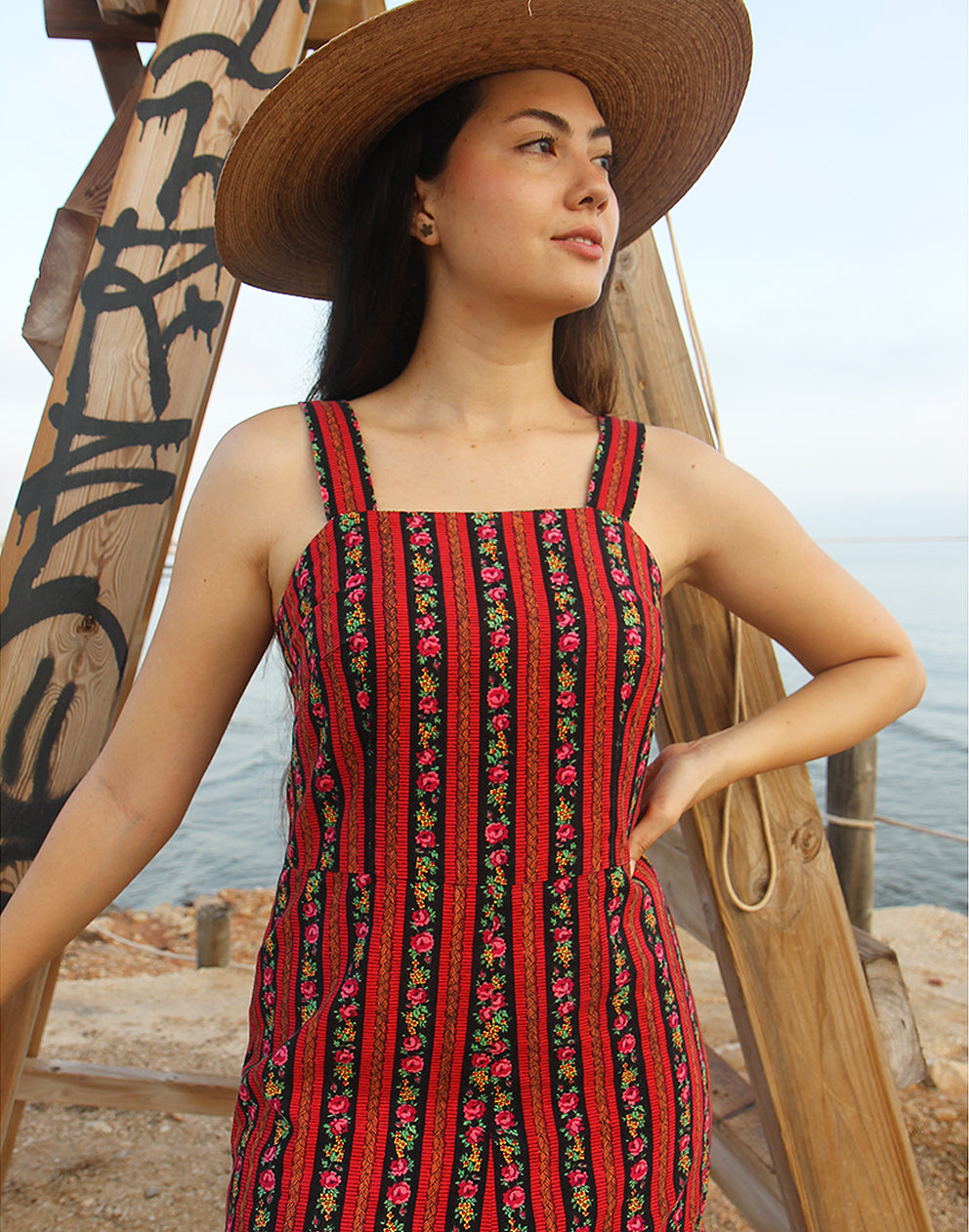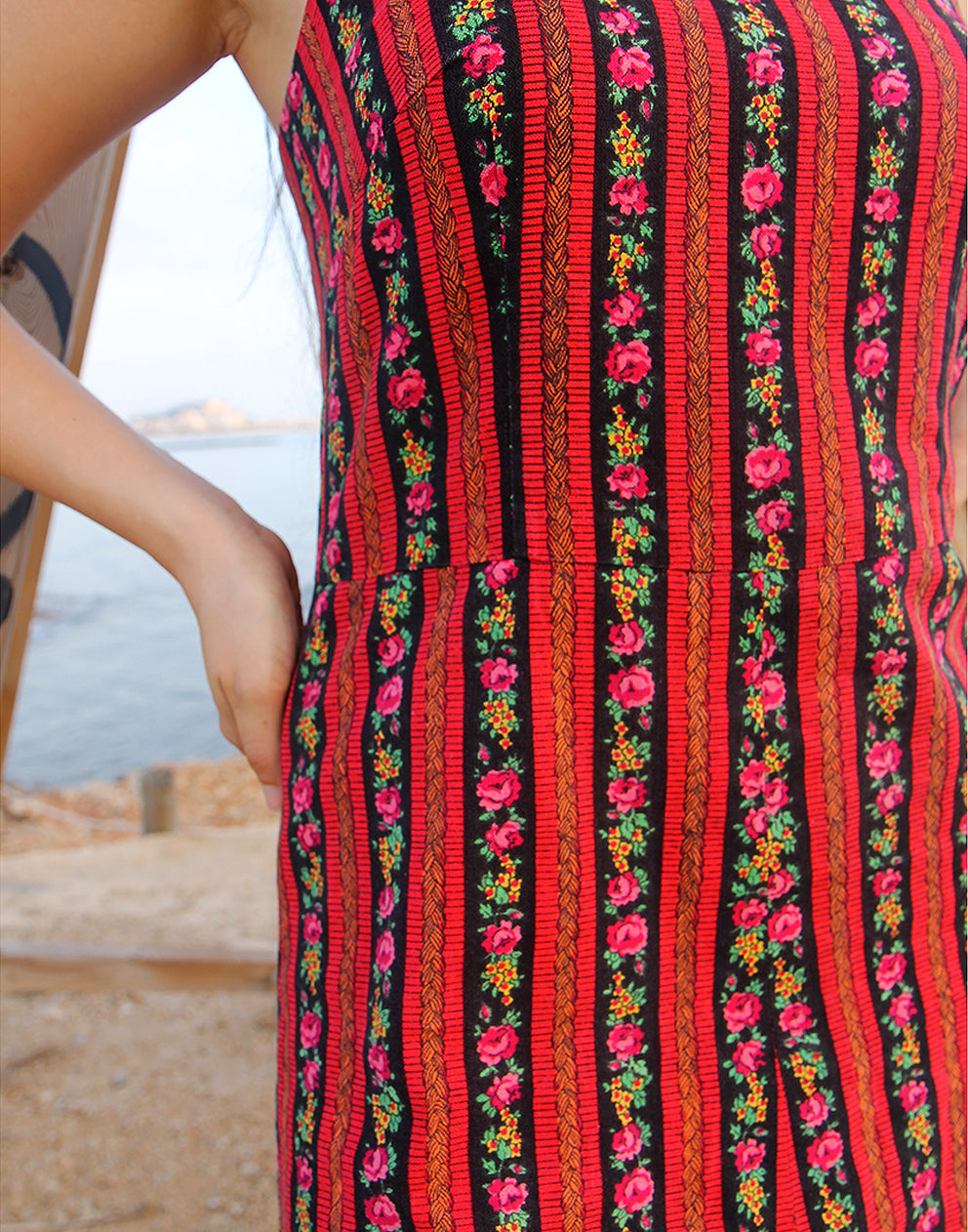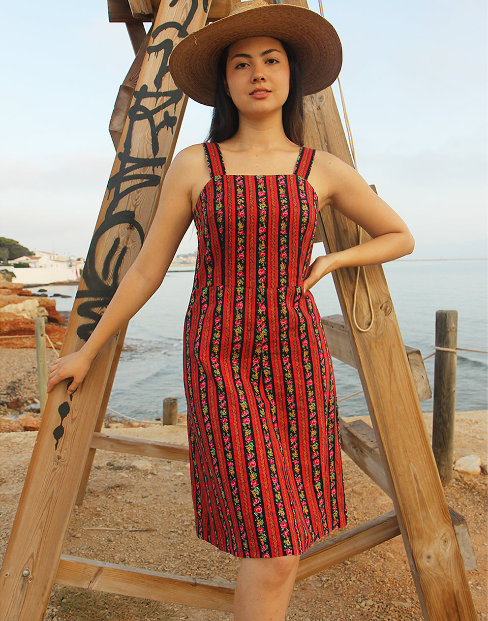Medidas: 34"/ 86cm busto - 30"/ 76cm cintura - 38"/ 97cm caderas - 40"/ 102cm largo del vestido.
