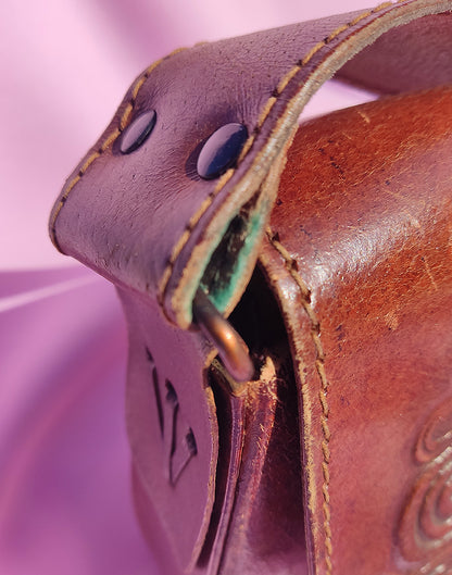 Brown Real Leather Bag with Shoulder StrapOriginal vintage real leather shoulder bag in a dark brown colour.